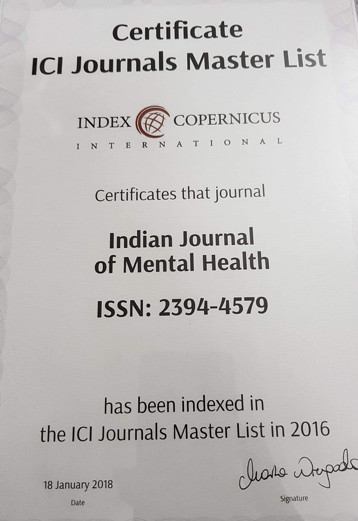 - Certificate ICI Journals Master List (2018)